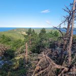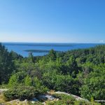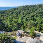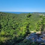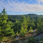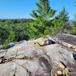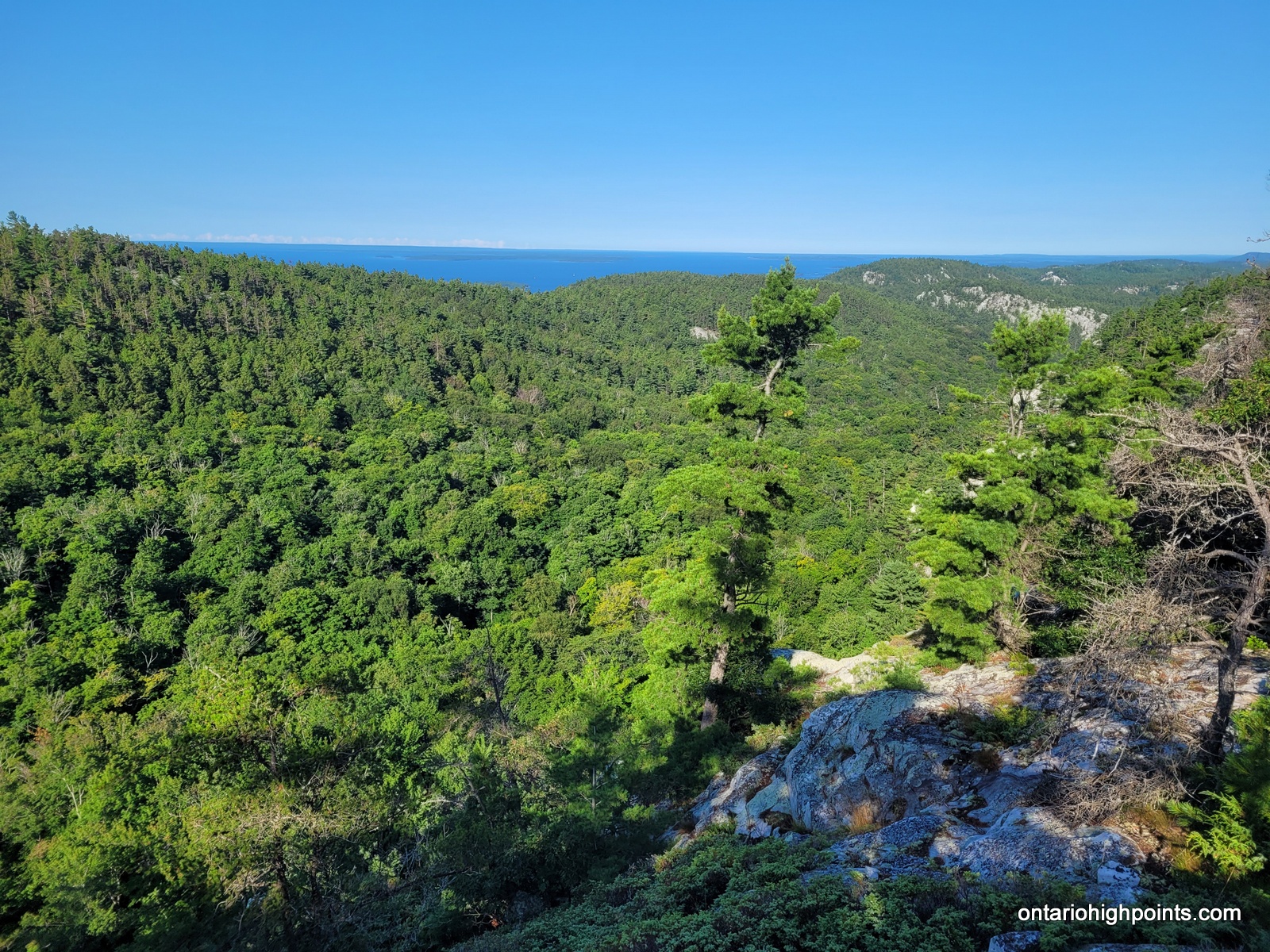 The West Peak of White Mountain, thinly forested with jack pines and juniper mats has good views towards Lake Huron and Manitoulin Island. After photos and GPS readings I departed the peak and headed towards the East Peak of White Mountain, which is about 500 meters to the southeast. Similar to the East Peak, the West Peak is only partially forested, has lots of exposed bedrock and has good views south towards Lake Huron. According to my GPS readings, the East Peak is slightly higher.