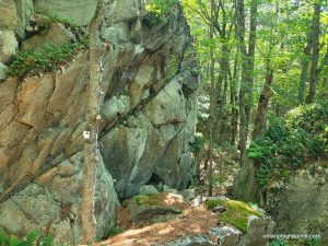 Trail passes through a rock notch