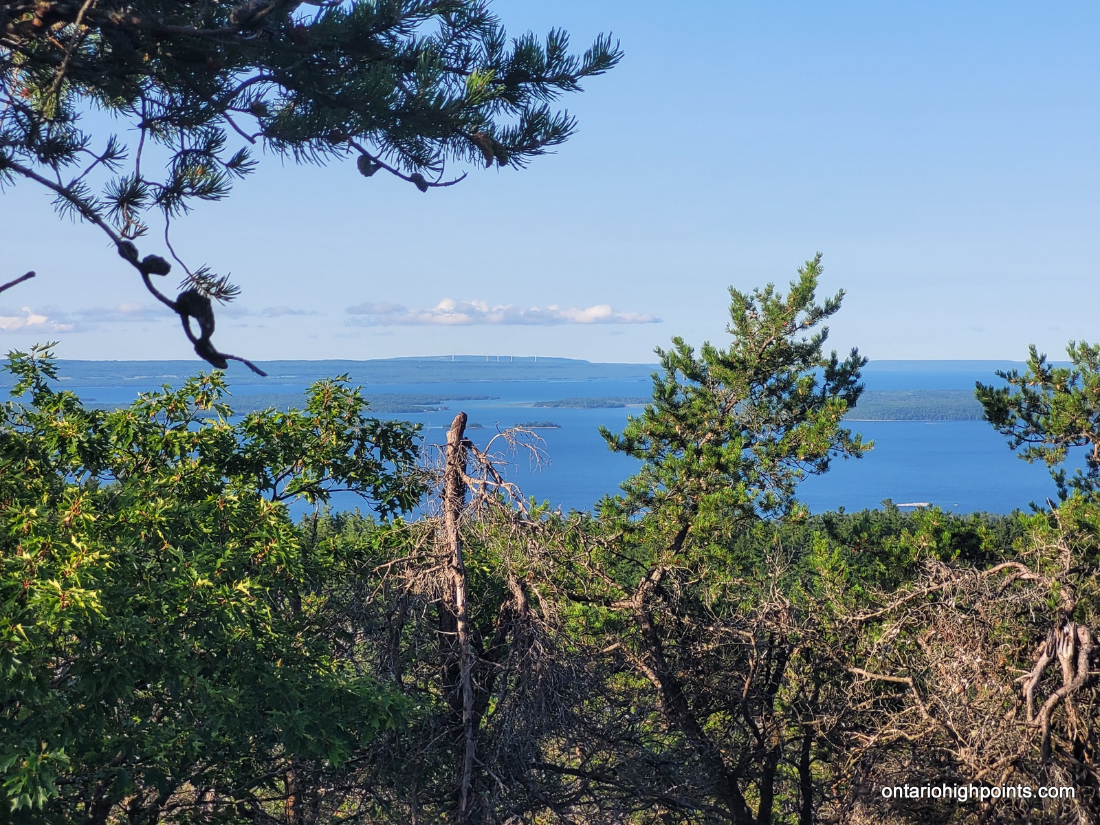 View south from White Mountain – West Peak towards wind farm on Manitoulin Island