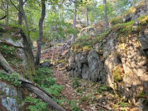 The trail ascending up a notch in the rock