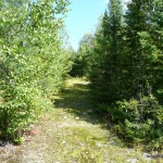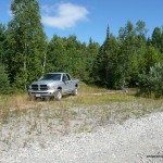 As we drove up Domtar Road along Tujak Lake, we passed a small village of trucks and trailers parked up and down both sides of the road, with the ‘village’ residents out and about — A nice way to spend a a couple weeks of summer. After exploring the area south of Witchdoctor Lake, we discovered yet again that many of the roads on the OBM maps no longer exist. This forced us to consider a secondary route to the Peak, and we backtracked down Domtar Road to a bend in the road where an overgrown ATV path diverged.